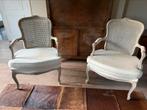 Fauteuils louis xv dossier arrondi avec un cannage. • sculptures florales discrètes en haut du dossier et sur la ceinture.