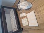 Enkel een aantal keren gebruikt bij de oma, dus nog zo goed als nieuw. (Rookvrij) reisbedje bodem matras hoeslaken 2bedovertrekken