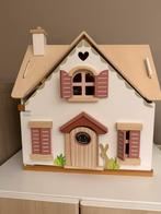 Poppenhuis van tender leaf toys te koop met meubels en 6 poppetjes. Dak kan eraf. Gaat open via draaideur, scharnieren zijn los, een handige papa/ mama kan dit maken.