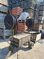 Wagentje met materiaalbak en 2 luchtdrukhaspels lengte leidingen ± 150m de haspels draaien vlot en snel manueel op