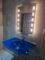 Glazen lavabo met bijhorende kraan (axor) en make up spiegel - kleine beschadiging in kom, lichte krasjes door gebruik verkoop wegens verbouwingen