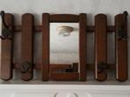 Rustieke massief eiken wandkapstok met spiegel in perfecte staat. Met 4 mooie retrohaken met 8 kleine haken en 2 grote haken. Nog