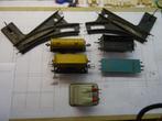 2 aiguillages 0l8 marklin 4 wagons meccano horby : citerne+basculant+tombreau+plat le tout dans une boite en bois.