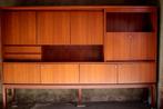 Kast midden jaren '60 2,26x1,50x0,42 de volledige kast heeft dezelfde kleurtint. Het onderste gedeelte van de kast lijkt licht