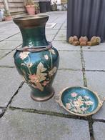 Heel mooie vaas , in soort koper/ijzer/legering . Met heel mooie bloemen decoratie . Bieden graag