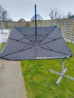 Vente de garage à zevekote l'image montre un grand écran noir parapluie d'accueil posé sur le sol, avec le logo et le slogan carlsberg (« probablement la meilleure bière du monde »). Caractéri