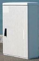 Voetpadkast in polyester, gerecupereerd, met als afmetingen hxbxd = 875x590x320mm. In de zwarte handgreep kan een slot worden geplaatst.