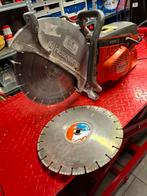Volledig vernieuwde husqvarna k970 met 2 zaagbladen 350mm nieuwe riem, piston, cilinder + segmenten, pakkingen, carburator ultrasoon gereinigd +afgesteld. Kortom nieuw slijper met gebruik sporen aan d