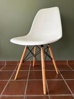6 kuipstoelen - enkel afhalen! - Plastic afwasbare zit (witte kleur) - ijzeren steunconstructie tussen poten (zwart) - houten poten (lichtbruin hout kleur) in zeer goede staat!!!