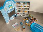 Winkeltje van karton met mandje als extra. Winkel niet compleet maar met dubbele artikelen en extra’s.