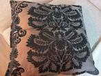 Lot de 6 coussins + 2 housses , 4noirs et 4 crème, très beau tissu de qualité, légèrement soyeux. Dimensions 40 × 40cm. + Grand abat jour assorti : basé 57cm, hauteur 35cm, ouverture dessus 17cm. Conf