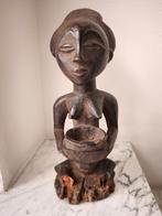 Statue fétiche à offrandes. Bois. Ethnie luba (rdc). Très belle patine d'usage. Ancienne pièce. Le socle a été anciennement partiellement dévoré par les termites (voir dernières photos). Ex collec