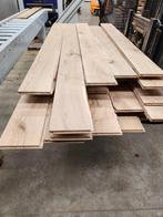Plancher en planches de chêne composite de 16 mm d'épaisseur, 195 mm de large, de 600 à 2900 mm de long, principalement supérieures à 1900 mm. Couche supérieure en chêne rustique fermette de 4 mm,