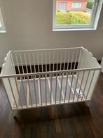 Kinderbedje hout - wit geschilderd met matras afmetingen: lengte 124 cm breedte 66 cm hoogte 80 cm