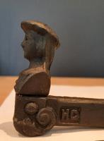 Fermetures de volet en fonte figuratives anciennes et originales (6x) personne portant un chapeau initiales hg longueur 18/14 cm
