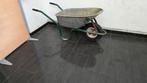 Brouette limex, d'une contenance de 90l, a un châssis peint en vert et un bac galvanisé avec une roue pleine