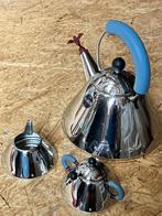 Vintage maar nooit gebruikt alessi michael greaves mg9093 vogelfluitketel: italiaanse roestvrijstalen theepot uit de jaren 80, nooit gebruikt. Melk- en suikerkan. In de jaren 80 samen aangekocht.