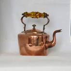 Ancienne bouilloire victorienne datant d'environ 1900. Cuivre rouge avec manche en verre ambré. Très typique de l'époque.