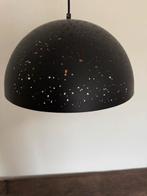 Lampe suspendue moderne. Pour le hall ou la chambre. Capuchon en métal. Extérieur noir et intérieur doré. Grâce aux petites perfor
