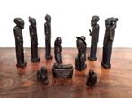 Afrikaanse kerststal figuren vintage. Zeldzaam en uniek item ebbenhout jozef, maria en kribbe met jezus drie koningen twee herders