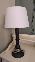 Twee identieke tafellampen in nieuw staat. Kleur houten voet : donkerbruin kleur stoffen kapjes : ecru draad 165 cm hoogte zonder kap en lamp 30 cm hoogte met kap 37 cm prijs € 15 / stuk exl lamp