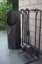 Haardstel en houtemmer/kolenemmer merk abc pejs haardstel van links naar rechts : tang - schop - borstel - pook kan op de vloer geplaatst worden - zie foto of kan aan de muur gehangen worden - origin