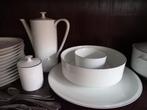 Porseleinen servies arzberg (duitsland). Wit met een zilverkleurig randje. Bestaat uit twaalf diepe borden, twaalf grote platte borden en twaalf kleine platte borden. Een soepterrine, een kom met deks