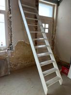 Stevige houten trap - 290 op 66cm. Heeft in open ruimte gestaan. Dus 2m90 lang - 225cm hoog van vloer tot boven en 165cm plaats op vloer van aan muur tot binnen trede die hij inneemt