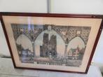 Belle gravure en couleur intitulée vision d'autrefois (20e siècle) en très bon état et encadré exemplaire signé et numéroté