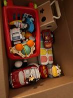 Een doosje vol babyspeelgoed met verschillende speelgoed van verschillende winkels : ikea,action,dreamland,dreambaby, kruidvat etc.