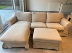 Mooie ikea zetel met bijpassende poef – in goede staat comfortabele, ruime zetel met chaise longue en losse poef. Ideaal voor een