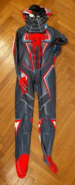 Jumpsuit verkleedpak, met kap en masker (alles in 1 stuk, masker = los) van miles morales uit 2099 (de "zwarte" spiderman). Gebruikt, maar nog in goede staat. Maat 150 (maar tailleert klein)