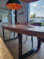 Eettafel in volle eik met zwart onderstel. Op maat laten maken. Weg wegens verhuis. Afmetingen: 300 cm x 105 cm