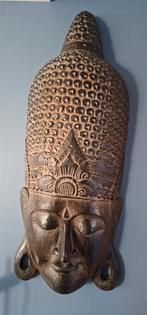 Mooi en groot houten boedha hoofd voor aan de muur . 96Cm hoog sfeervol decoratiestuk
