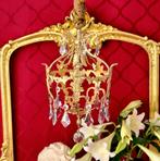 Belle lampe suspendue classique en laiton doré avec un point lumineux et d'élégants pendentifs en verre/cristal. Cette lampe dégage une élégance pure et attire tous les regards dans tous les intér