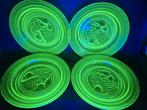 Plats en uranium (4) avec décor. 4 Pièces, quelques petits éclats disponibles, voir de nombreuses photos plus d'informations sur le verre à l'uranium : l'uranium — ou verre vert anna — a é
