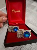 Dit zijn pigalle vintage manchetknopen met blauwe kristallen en een zilverkleurig gaasbandontwerp.