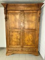 Kast, ong 100j oud, handgemaakt, 2,30m*1,60m*0,60m. Twee deuren met centraal slot, incl ijzeren kleerhanger; 2 schuiven met centra