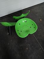 Drie tractorzitjes voor barkrukken opgeschuurd, gelast en gelakt. Enkel de zitschaaltjes geenn onderstel. Voor een originele toets