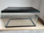 Leeg aquarium met inhoud van 60 liter. Deksel kan volledig open gezet worden. Via het kleine klepje vooraan kan je de vissen eten geven. Aquarium zo goed mogelijk uitgekuist. Enkel aquarium zonder toe