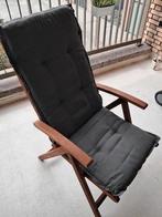 Zeer mooie en degelijke hardhouten standenstoelen compleet met kussens. Bieden voor 4 stuks. Hebben altijd binnen gestaan. Doen ze weg omdat we naar andere stijl (zwart) gaan overstappen. Alleen per 4