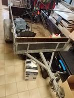 Aanhangwagen 110cm op 185cm, laadvermogen tot 500kg. Komt met reservewiel, mogelijkheid tot verhogen van +-20cm, afdekziel. Weg we