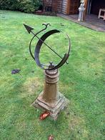 Bronzen zonnewijzer hoogte 110 cm. Doorsnee 40 cm. Afmeting voet 40x40 cm.