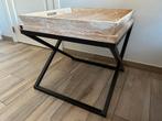 Prachtige montevideo landelijke bijzettafel van pr interiors in uitstekende staat. Deze stijlvolle bijzettafel combineert een wit geborsteld eiken blad met een zwart stalen onderstel, wat zorgt voor e