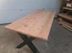 Boomstam tafel oud acasia onbehandeld afmeting lxbxh 180x100 76cm boomstam tafel, massief blad niet opgedikt... Boomstam tafel met x of u poot iedere tafel is uniek! De kleuren in het blad en de welvi