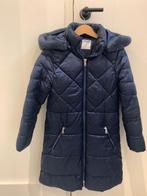 Supermooie blauwe winterjas voor meisjes. Lang model, lekker warm, met een superzachte pels aan een kap. Ziet er als nieuw uit! He