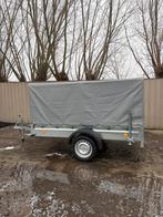 Aanhangwagen te koop, 750 kg ongeremd dus. Deze is 1 maal gebruikt en reden van verkoop, te klein en grotere aanhanger gekocht. Deze is kantelbaar, heeft een zeer kwalitatief zeil (afneembaar), neuswi
