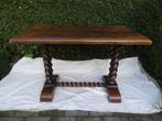 Table de salon en bois massif, 2 pieds torsadés, bien stable. Couleur foncée. Tablette 100 x 60 cm. Hauteur 66.5 Cm.
