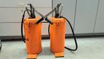 Twee handmatige oliepompen met voorraadvat. Voor werkzaamheden aan voertuigen of machines. Zeer goede staat.