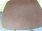 6 chaises de table marron foncé très robustes, avec sièges en tissu recouverts, toujours de très belles chaises.